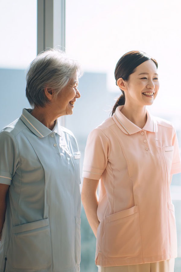 身体介護日常生活動作能力(ADL)の維持・向上を目的に、利用者様ができる限り自立した生活を送れるよう支援します。入浴・排せつ・食事などの介助だけでなく、リハビリ的な動作のサポートや意欲向上に向けたケアも提供します。